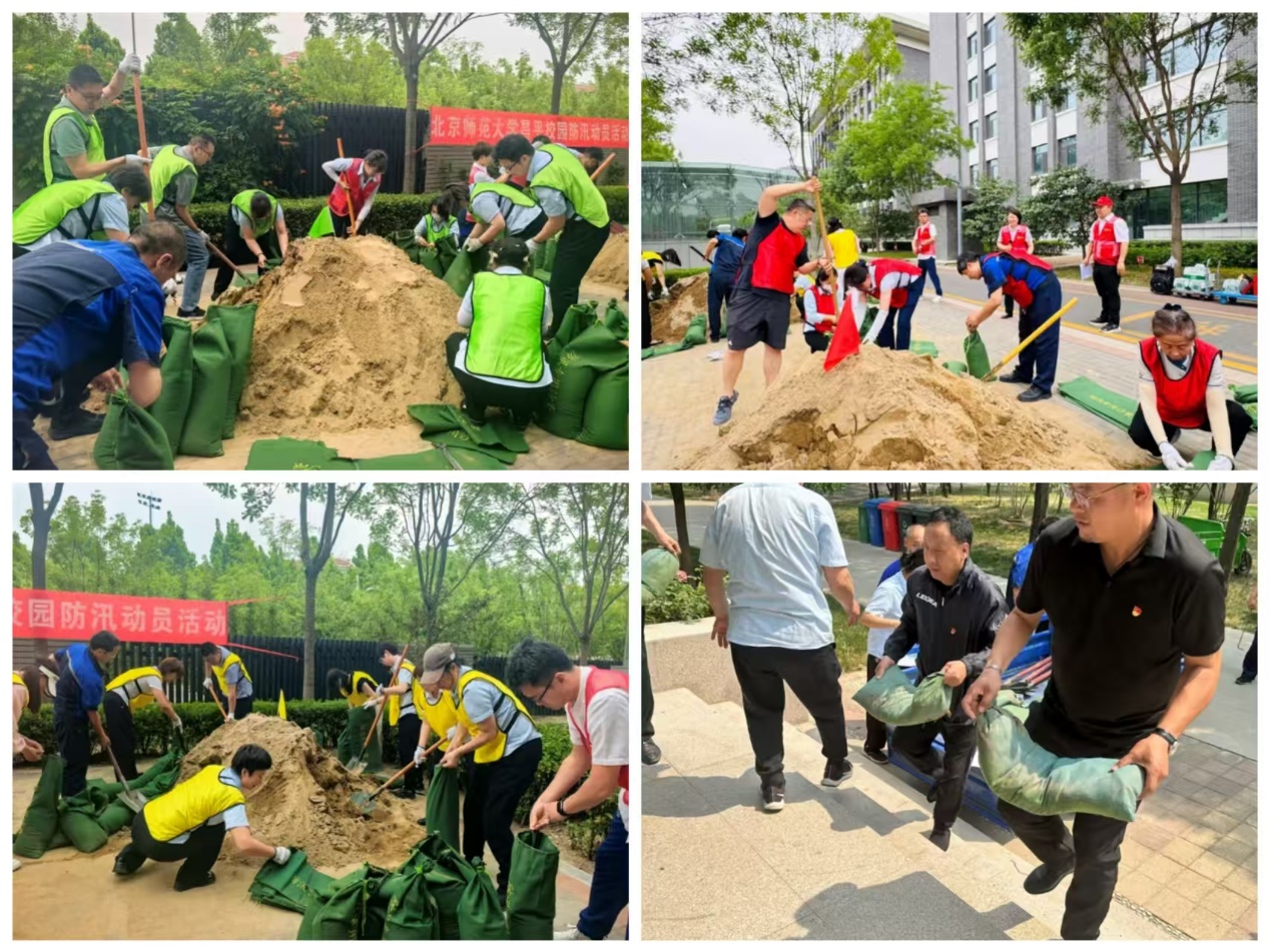 沙袋是防汛物资中基础、常用物品,可筑起临时堤坝,避免水流进入重要设施、区域。防汛备汛期,党员同志们和校园工作人员一道组织开展沙袋填装活动,是昌平校园组织防汛工作、进入汛期备战状态的集结号。演练过程中,参加活动的党员同志们分工明确、配合默契,“铲、装、封、运、验”链条清晰,比拼中锤炼党性、弘扬优良作风,以作风建设新成效护航总务工作高质量发展。