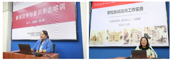 胡小溪带领大家学习了习近平书记关于意识形态工作的重要论述,详细讲解了总务后勤领域在意识形态工作方面面临的风险挑战,并结合学校实际,系统介绍了学校意识形态工作开展情况、落实意识形态工作责任制需关注的重点方面和具体工作建议。孙薇薇介绍了学校新闻宣传的主要平台与选题要点,结合具体案例,生动讲解了新闻稿件撰写的基本规范、注意事项与表达技巧,并就总务部如何进一步做好新闻宣传工作提出了宝贵建议。