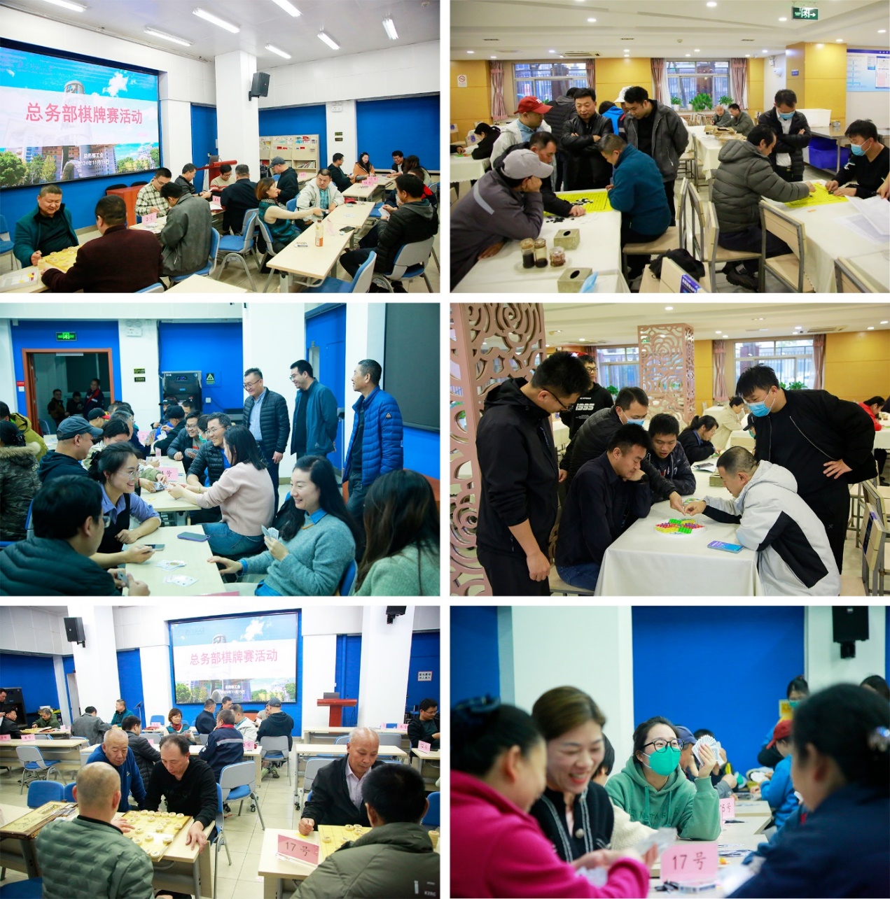 为丰富职工业余生活,加强部门职工之间交流与沟通,总务部工会于11月15日下午举办了棋牌比赛活动。此次比赛活动设置了五子棋、跳棋、象棋、升级、掼蛋、斗地主等项目,共有近300人参加活动。