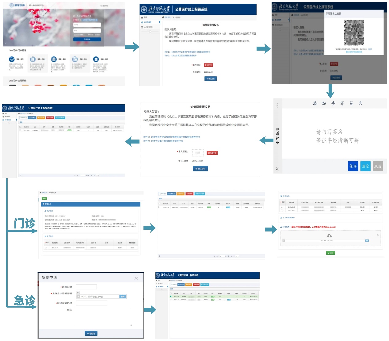 为切实解决师生公费医疗报销“排队长、流程繁”的问题,进一步提升医疗保障服务质量,北京师范大学联合北京大学第三医院(以下简称“北医三院”)研发的公费医疗人员北医三院就诊费用线上报销系统正式启用。