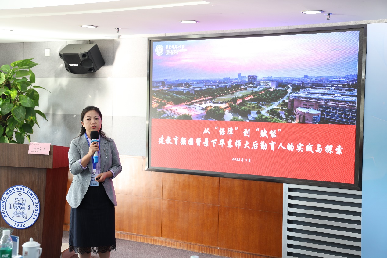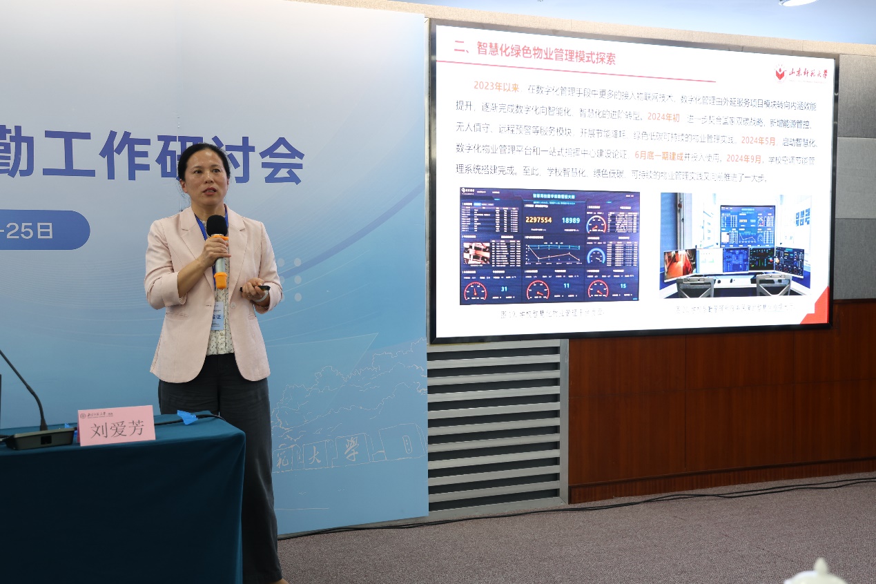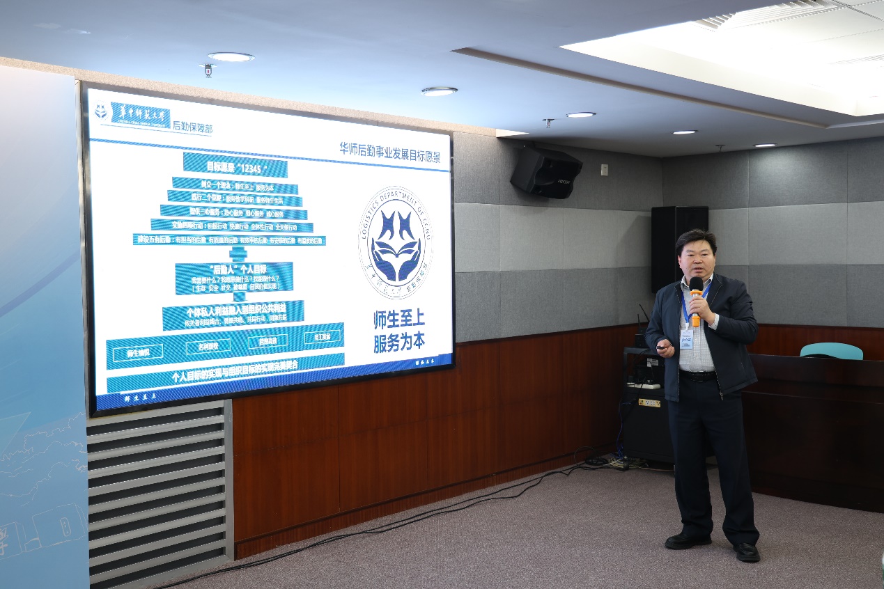 在院校分享环节,五所师范高校的代表结合各自学校特色,集中展示了后勤服务创新实践成果。北京师范大学副总务长赵强介绍了 “学校自营+合作经营+劳务派遣+品牌引进”的餐饮多模式运营机制,通过制度化管理与透明化监督,实现公益属性与市场活力的有机平衡。华东师范大学后勤保障部部长刘萍以丽娃河治理、毕业季花海建设等特色工作为例,阐述了后勤服务深度融入“三全育人”的实践路径。华中师范大学后勤保障部部长袁本芳分享了“管理机关+服务实体”的扁平化治理模式,通过PDCA循环管理,实现了学生公寓管理的标准化、智能化、精准化与育人化。陕西师范大学后勤管理与保障处杨悝展示了学校数智赋能能源管理的探索成果,其智慧供能平台实现了水电暖全流程可视化管控,有效达成了节能减排目标。山东师范大学后勤管理处处长刘爱芳介绍了智慧化绿色物业管理模式,通过“学苑管家”小程序、一站式指挥中心等数字化手段,构建起闭环管理与育人功能相融合的服务体系。