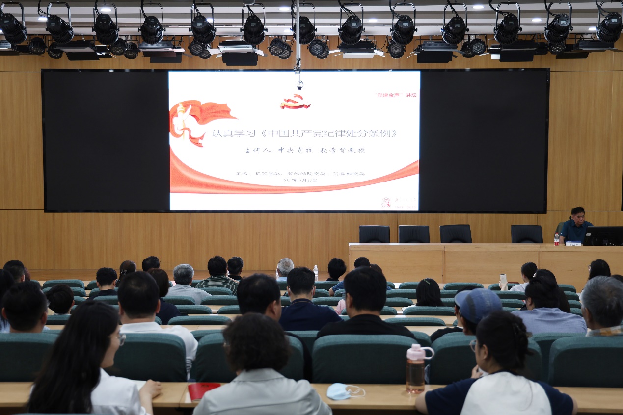 为深入开展党纪学习教育,进一步筑牢党员干部的纪律意识和党性根基,引导党员干部学纪、知纪、明纪、守纪,5月17日下午,总务部党委组织党员参加《中国共产党纪律处分条例》专题辅导报告,总务部处级干部、党委委员、支部书记及支委、党员代表共80余人参加报告会。此次活动由总务部党委和机关党委、哲学学院党委联合举办。