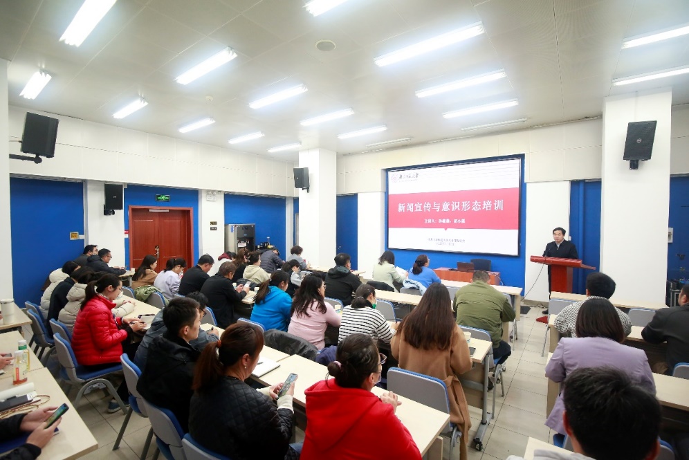 胡小溪带领大家学习了习近平书记关于意识形态工作的重要论述,详细讲解了总务后勤领域在意识形态工作方面面临的风险挑战,并结合学校实际,系统介绍了学校意识形态工作开展情况、落实意识形态工作责任制需关注的重点方面和具体工作建议。孙薇薇介绍了学校新闻宣传的主要平台与选题要点,结合具体案例,生动讲解了新闻稿件撰写的基本规范、注意事项与表达技巧,并就总务部如何进一步做好新闻宣传工作提出了宝贵建议。