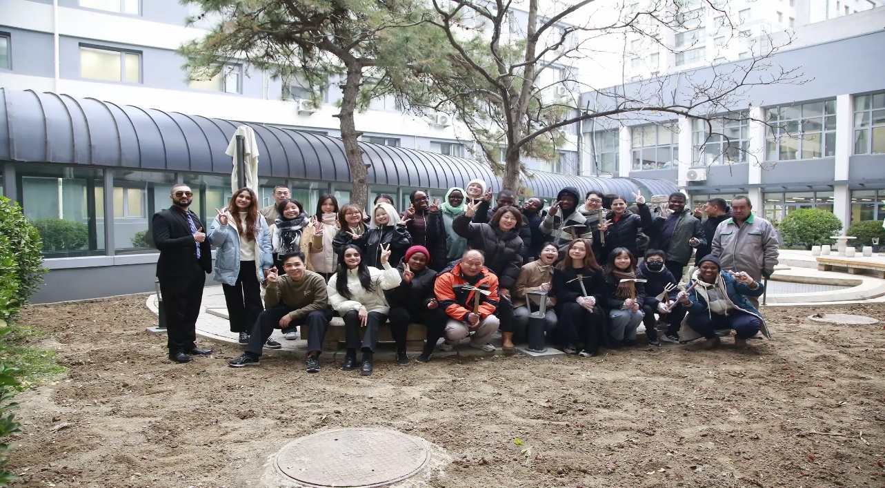 活动现场气氛热烈,留学生们分工协作,挖坑、放种、培土、浇水,每个步骤都做得认真细致。大家在劳动中亲近自然,用不同语言交流,不仅体验到亲手种植的乐趣,也感受到生命成长的喜悦。