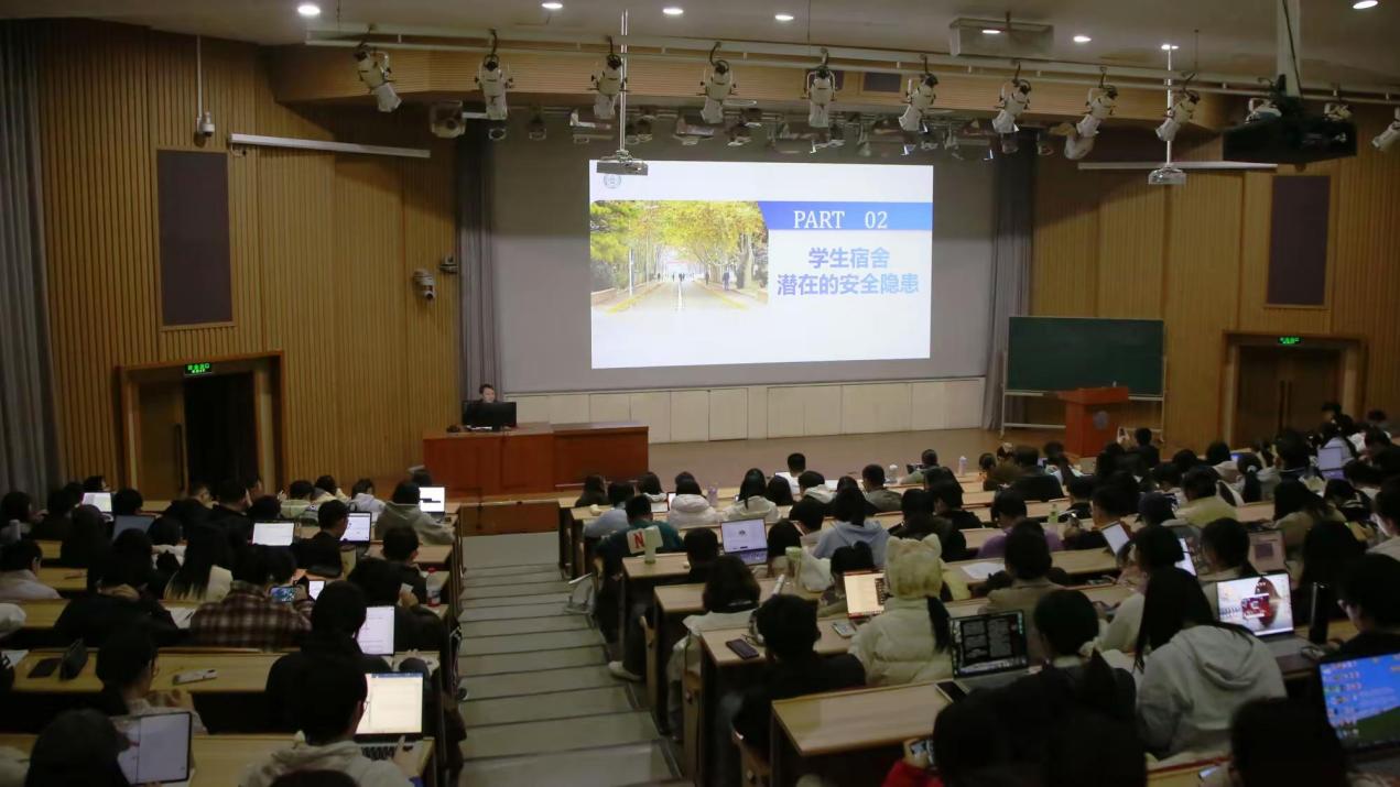 10月29日晚6:30,总务部物业管理中心联合学工部在敬文讲堂举办宿舍消防安全知识讲座,200余名新生宿舍长参加。安保科负责人结合宿舍常见隐患、典型火灾案例、安全设备认知等,讲解火灾预防、报警流程、逃生技巧等内容,重点强调宿舍用电安全、隐患排查要点,进一步筑牢同学安全思想防线。